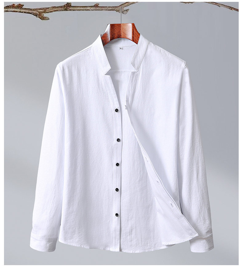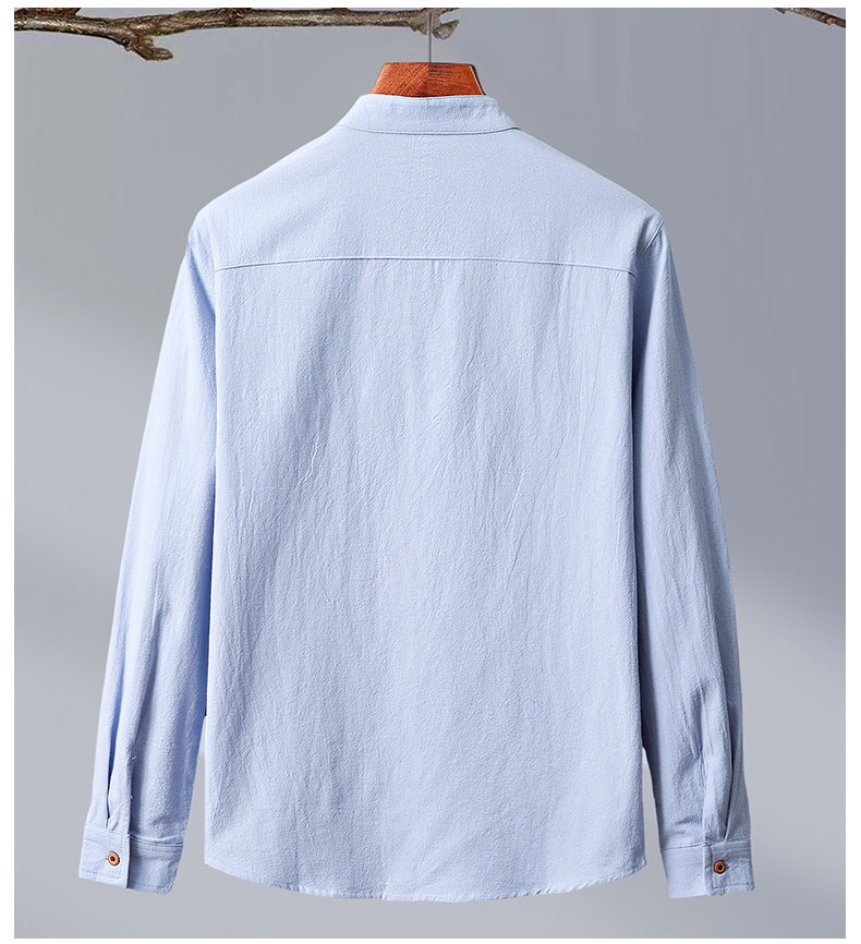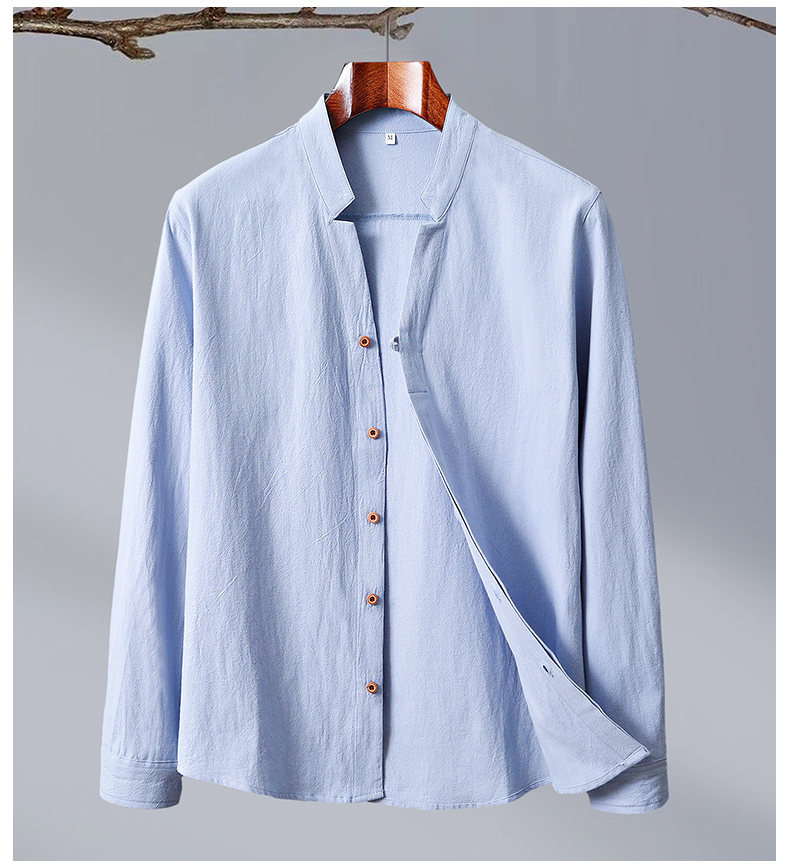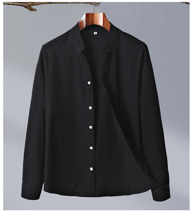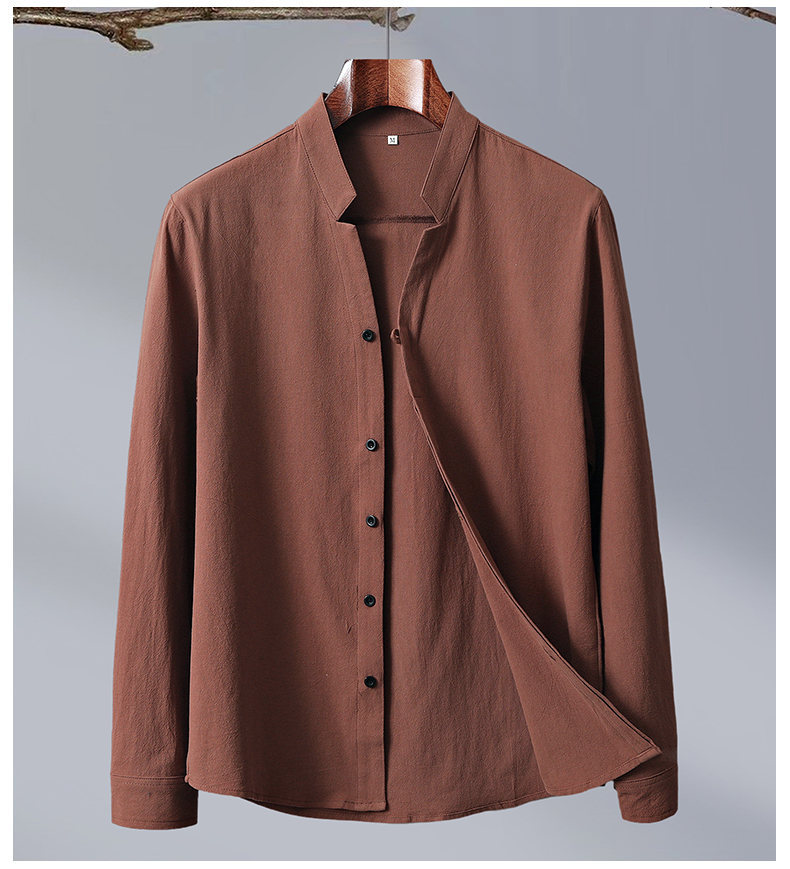 2024 Cotton and Hemp Crepe Solid Color Chinese Style Men's Long Sleeve Shirt Casual Shirt Men's Large 8K01 Long Sleeve Men's